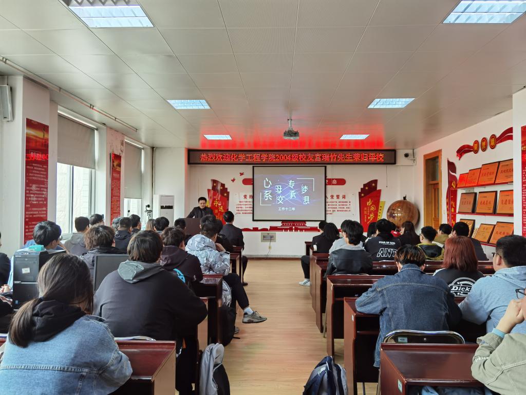 宫瑞竹是我校2004级化工优创专业校友,现任巨化集团浙江晋巨化工有限公司人力资源部副部长。他先以一首打油诗作为开场白化院毕业初入行,意气风发斗志昂。工艺营销和人力,酸甜苦辣心中藏。宫瑞竹说道,自从毕业以来,虽然每天都是忙碌奔波,也想过退缩放弃,但他相信付出终有回报,方向没错终会成功。正是由于自己的努力和赶上的机遇,毛遂自荐,敢于发声,才会让自己实现梦想,最终变大变强。他结合自身的学习、就业经历以及公司的招聘标准,鼓励同学们准备要趁早、学习要专一、态度要诚恳,强调学好专业课的重要性,并寄予同学们在今后学习或者工作的道路上,要学会复杂寻找简单。