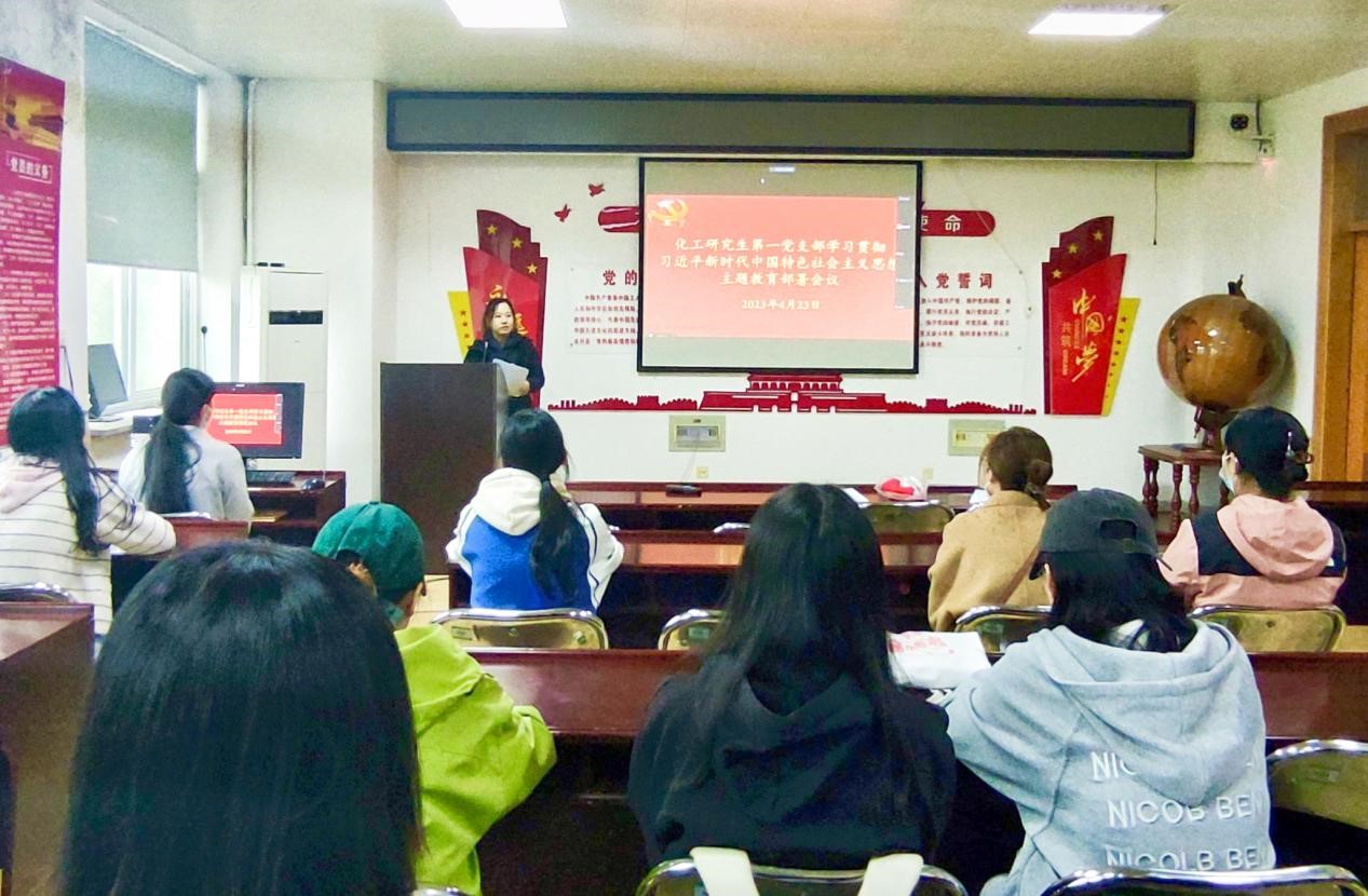 423日中午,化工学院研究生第一党支部在稚川楼310召开党员大会,传达学校学习贯彻习近平新时代中国特色社会主义思想主题教育工作会议精神和我校主题教育工作部署会要求,结合工作实际对落实学校主题教育实施方案进行再部署、再动员。支部全体党员以线上线下相结合的形式参加会议,会议由支部书记李昱主持。