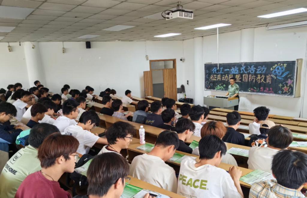 讲座以"携笔从戎,绽放青春"为主题拉开帷幕。王希阳老师结合政策文件,系统解读2025年大学生应征入伍的报名条件、学业保障、经济补助、升学就业等优惠政策,细致梳理从报名体检到审批定兵的全流程环节。通过播放部队训练、文化生活等纪实视频,真实展现军旅生活的魅力与担当。"迷彩青春是最闪耀的勋章,军营淬炼是最宝贵的成长。"王老师深情讲述往届化工学子扎根军营、建功立业的典型事迹,激励同学们将个人理想融入强军伟业,在绿色方阵中书写无悔青春。互动环节气氛热烈,针对学生普遍关注的学业保留与复学衔接、部队考学条件、退役发展规划等问题,王老师结合政策文件与工作经验逐一答疑解惑,现场不时响起热烈掌声。