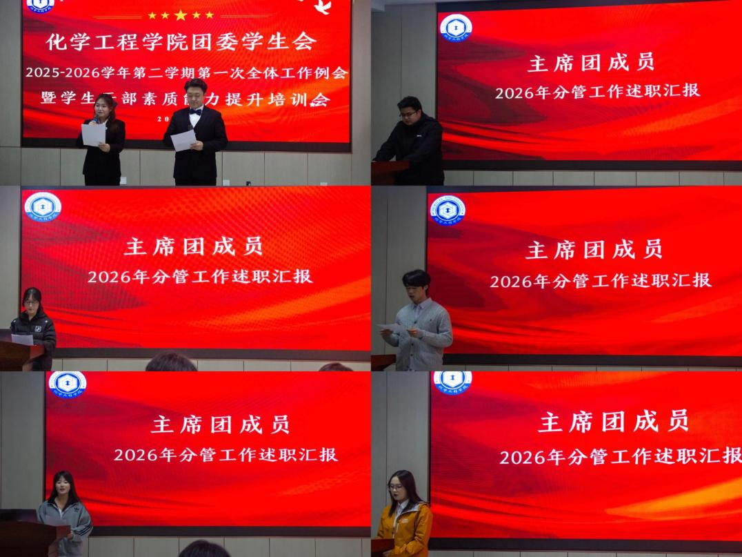 会议伊始,学院团委五位主席团成员依次围绕分管部门职责,结合上学期工作成效与不足,进行了全面细致的总结,并结合学校团委年度工作要点以及学院工作实际从思想引领、组织建设、校园文化、志愿服务、科技创新等方面提出了新学期的工作思路与具体举措,为后续各项团学工作的有序开展奠定了坚实基础,同时也展现了学生骨干务实严谨的工作态度和开拓创新的工作思路。
